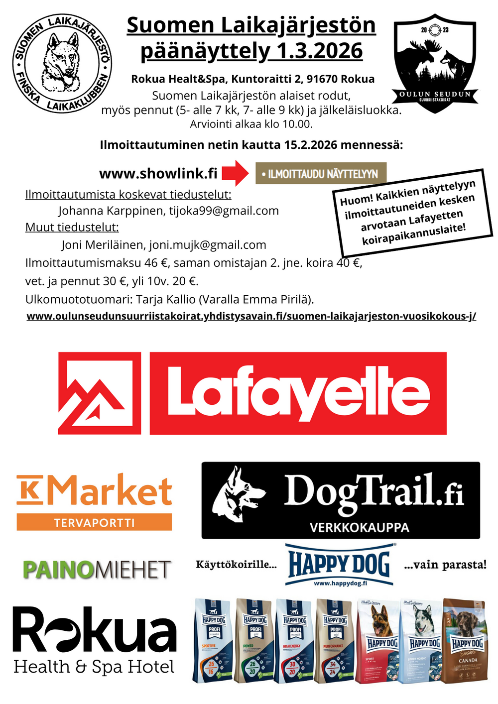 Suomen Laikajärjestön vuosikokous ja päänäyttely 2026